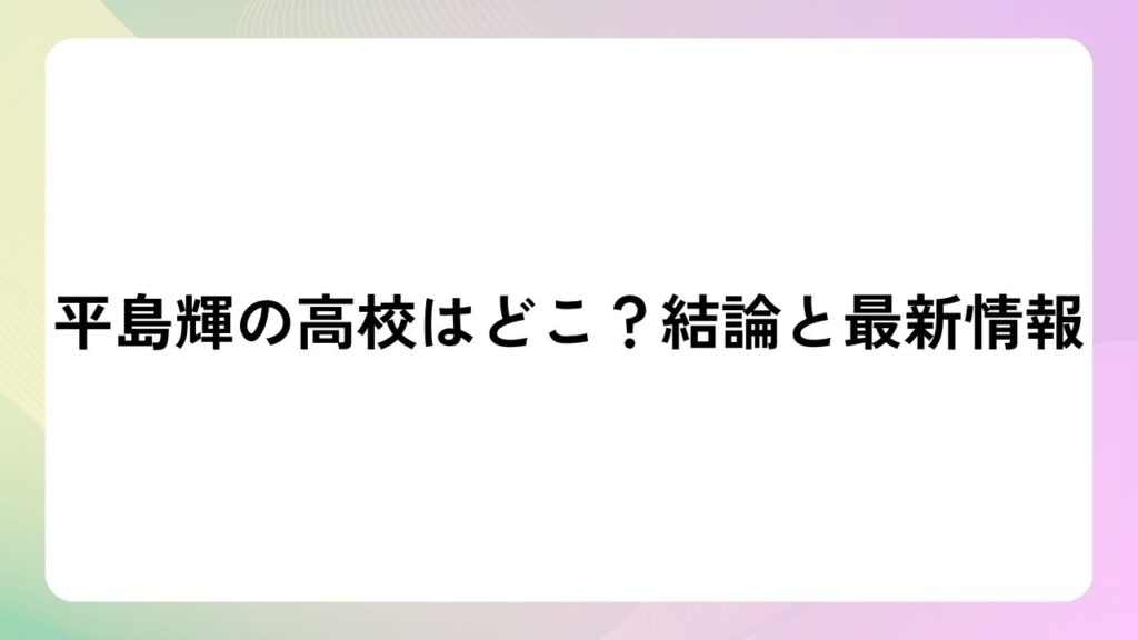 そこで当記事では、平島輝さんの高校に関する最新情報や噂の真相、さらにプロフィールや背景まで徹底的に解説していきます。
