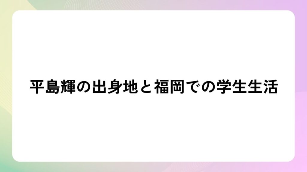 平島輝さんの高校を語るうえで欠かせないのが、出身地である福岡との関係です。地元での生活や経験が、現在の活動や魅力につながっていると考えられています。