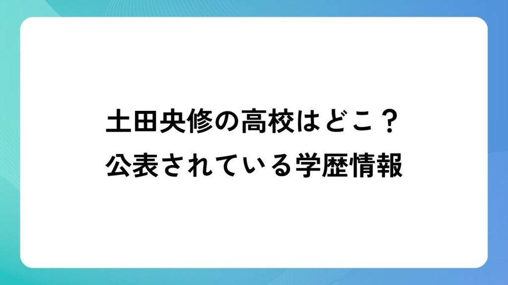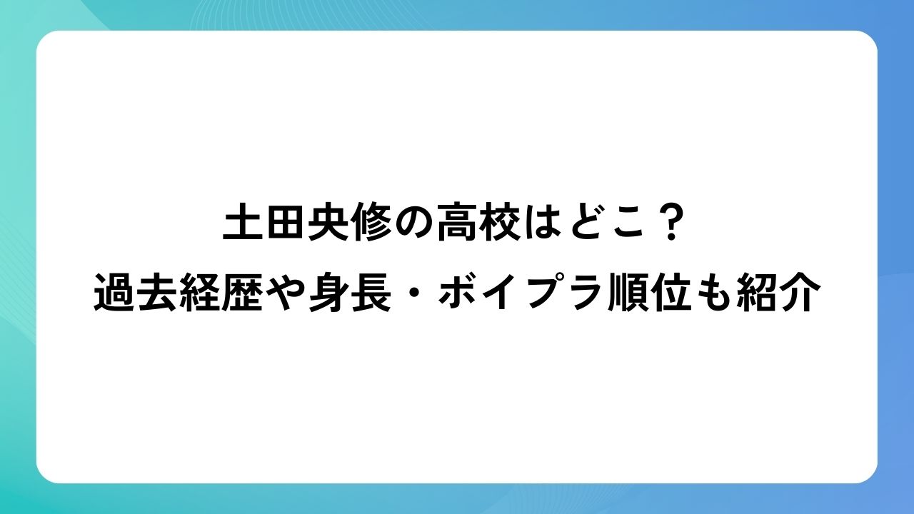 土田央修の高校については、多くのファンが関心を寄せています。結論から言うと、土田央修の高校名は現在も公式には公表されていません。ただし、いくつかの情報から学生時代の活動を推測することは可能です。ここでは、公開されている事実と考えられる背景を整理して紹介します。