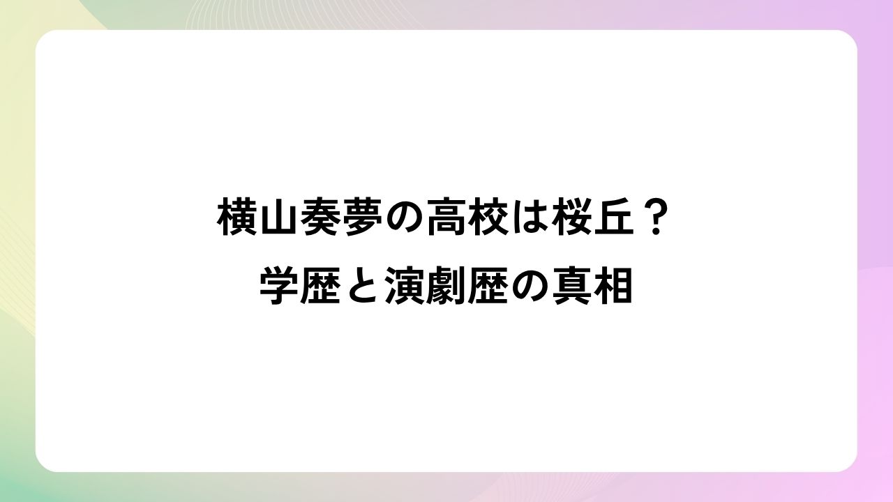 当記事では横山奏夢の高校を中心に、大学や演劇経験、キャラクターの魅力について紹介しました。
