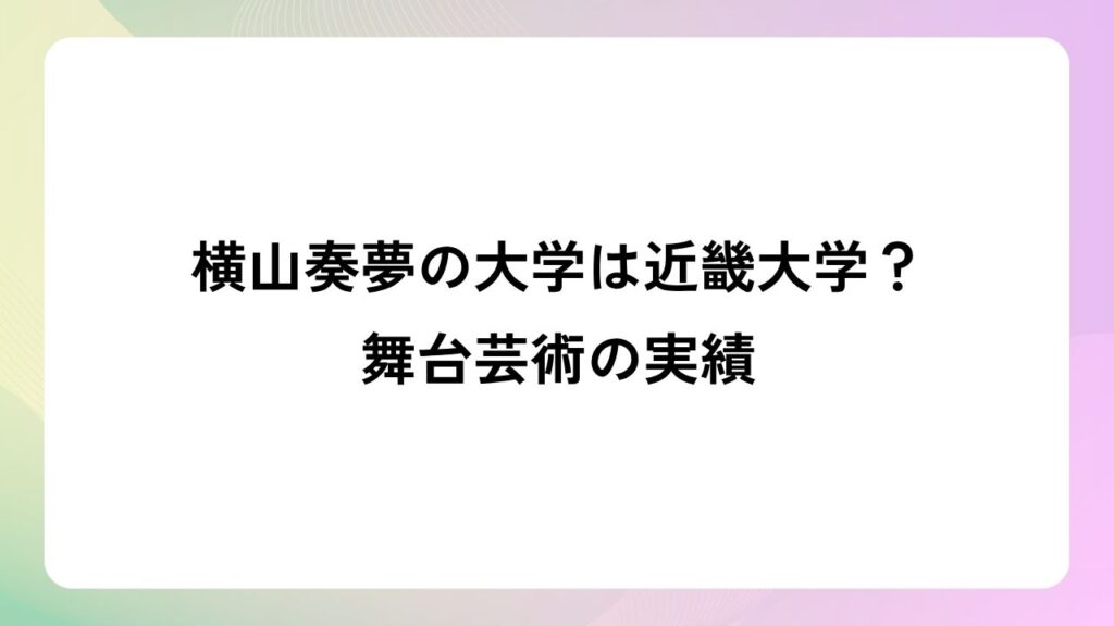 さらに、横山奏夢さんの独特なキャラクターや圧倒的な表現力を見ると、「学生時代にどんな経験をしてきたのか?」と深掘りしたくなるはずです。