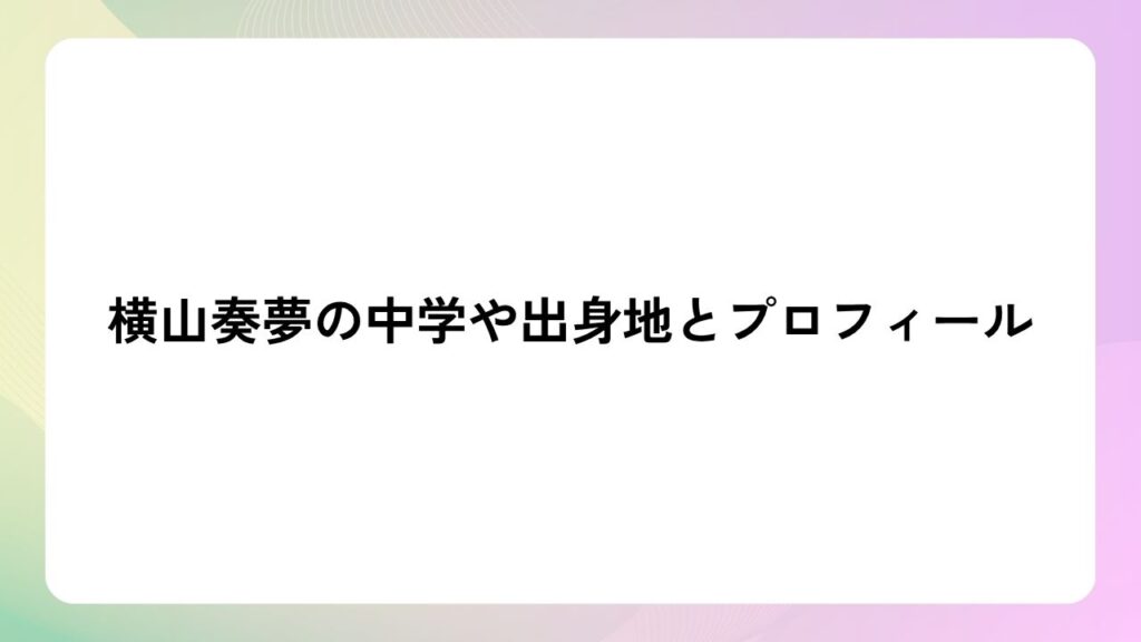 横山奏夢の高校だけでなく、中学時代や出身地などの基本情報も気になるところです。ここではプロフィールとあわせて整理します。