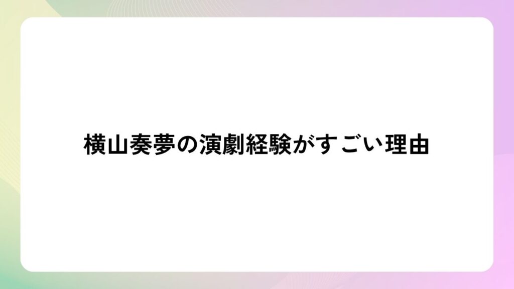 横山奏夢の高校時代から続く演劇経験は、現在の評価を大きく支える要素となっています。その実力の背景を詳しく見ていきます。